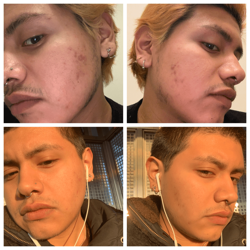Finally here is my skin the first day vs the three weeks. As you can see big difference. Mostly all my acne is gone and all the redness and swelling has gone down. This is also a great app for ingrown hairs. This is great because this was a major problem I have after shaving. This has made the number of ingrown hairs I have be less.