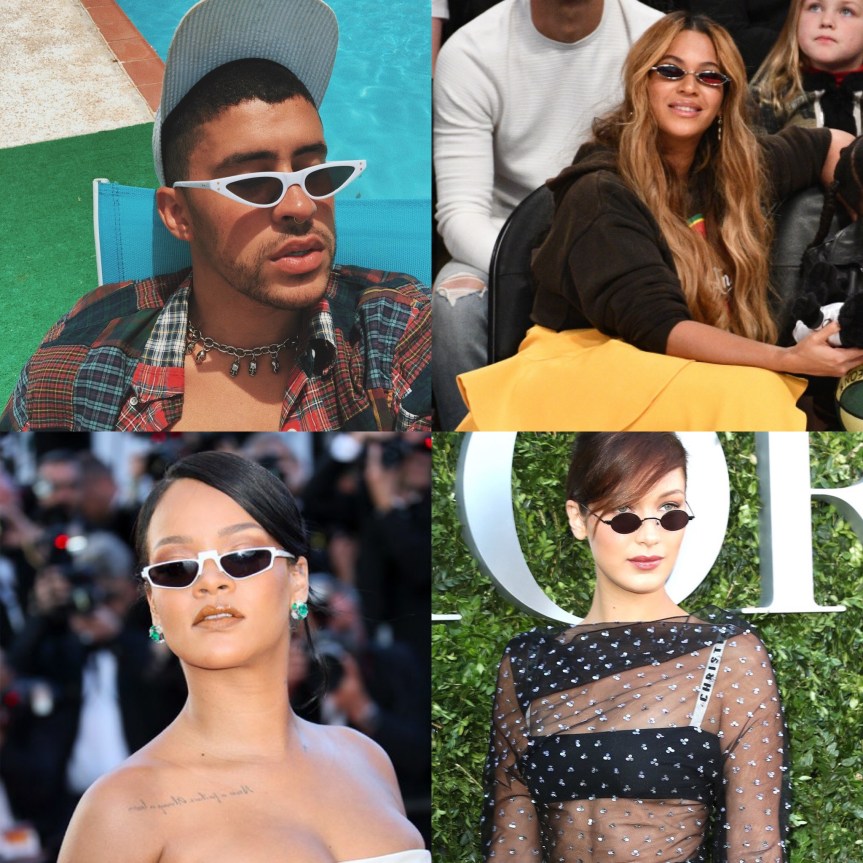 Staying in the small world. Another trend that happened because of there size was the small sunglasses trend. This was another trend I thought was cute because of the size. Although I could never pull it off because I have a big head, I appreciate this.