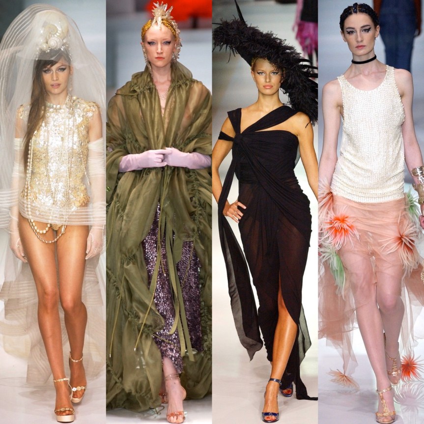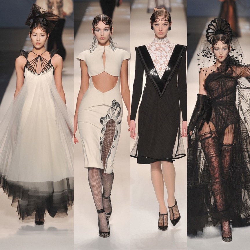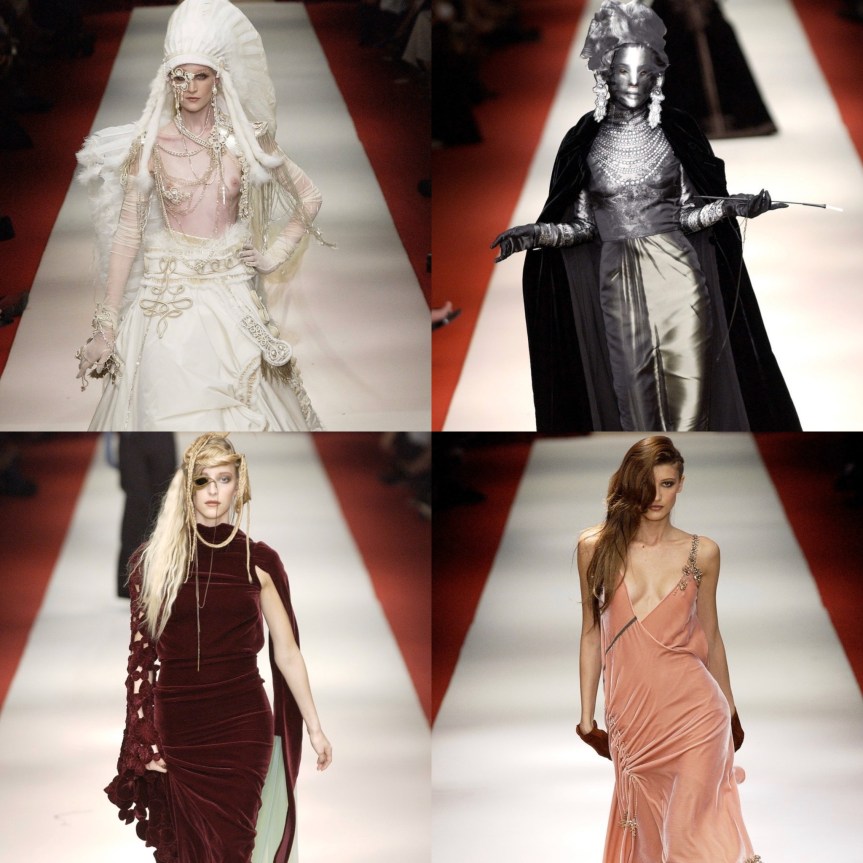 What we do know is that today, January 22, he showed his final Haute Couture show in Paris. The show was filled with all of his close friends and muses over the years. For this post I will be showing my favorite looks from his couture shows since his first one in 1997. I will not, however, include looks from his last show because I will talk about that in a separate post because I want to focus on his last collection more since it has double the amount of items one of his regular collections would have.