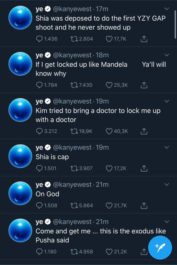 This can be seen in the tweets above where he states Kim tried to lock him up and if he gets locked up we know why. I honestly feel sad for Kanye because that is just his family want to help him and make him feel better.